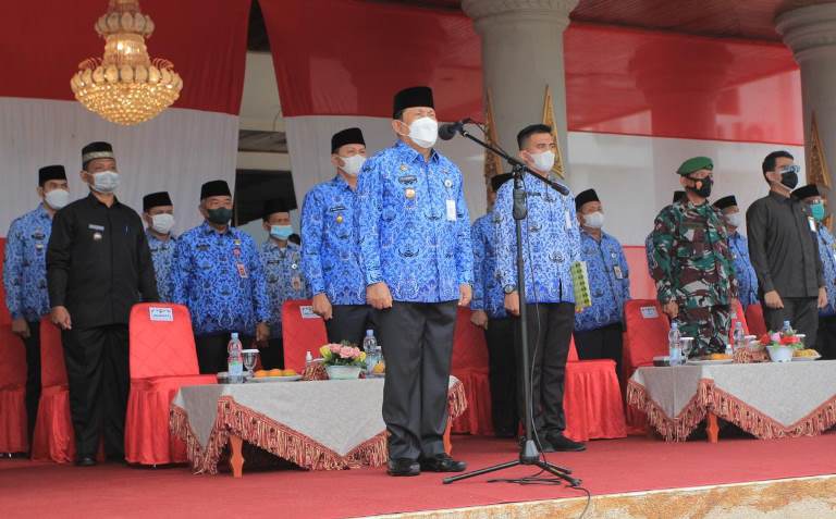 GETARPIJAR.COM - Bupati Rokan Hulu (Rohul) H.Sukiman bertindak sebagai Inspektur Upacara dalam rangka Hari Pahlawan tahun 2021 bertempat di Halaman Kantor Bupati Rokan Hulu, Rabu (10/11/2021).